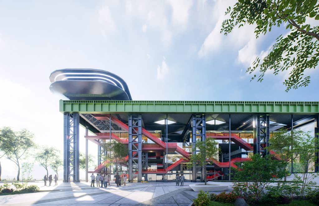 设计通过创造性的「职住创一体化聚落系统」,将NVIDIA的高效垂直单元模式与Google的跨层交互基因重组,激发创客社群高频碰撞。空间垂直叠合运河市集、数字工坊、孵化器及共享服务层,形成昼夜联动的活力引擎。将废弃钢铁冶炼厂房重塑为融合创客生产与社区生活的垂直混融载体。作为城市触媒,项目以空间创新驱动产业从钢铁熔炉蜕变为创新容器,正以产学研用一体化模式重振运河产业带。