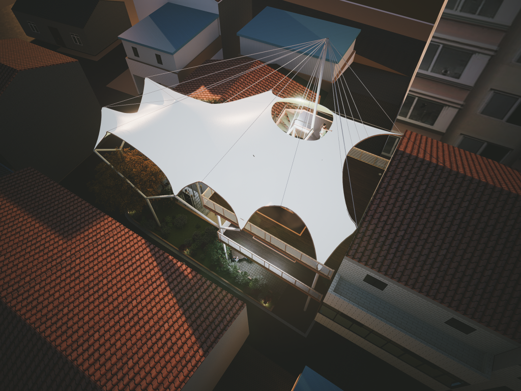 秦淮·山水栖月 本次方案所展示的码头游客中心设计,无疑是对传统与现代设计哲学的完美融合。设计手法上,建筑师巧妙地运用了仿古元素,如木质结构和流畅的线条,营造出一种宁静而优雅的氛围。廊架上方悬挂的灯笼不仅提供了照明,还为整个场景增添了一份温馨和浪漫,仿佛在诉说着古老的故事。这种设计手法不仅体现了对传统文化的尊重,也展示了现代设计的创新性和灵活性。.